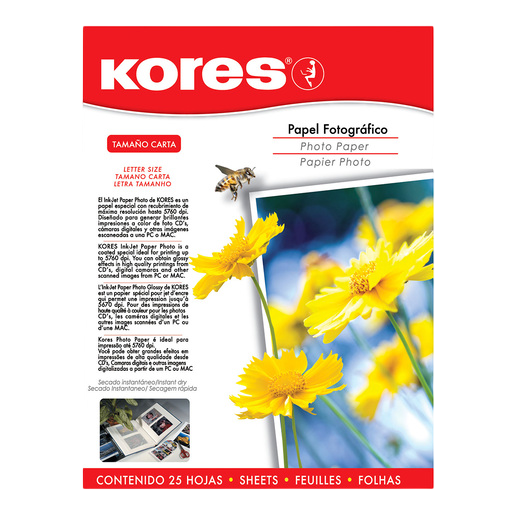 PAPEL FOTOGRAFICO TAMAÑO CARTA CON 25 HOJAS C6039A KORES