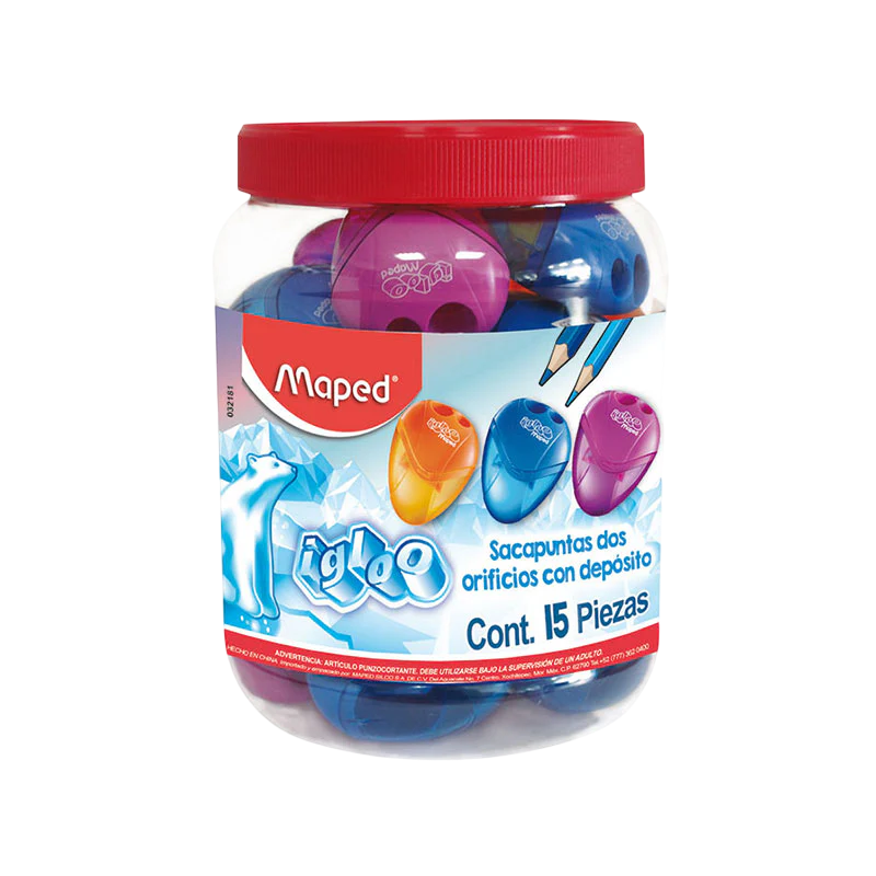SACAPUNTA ESCOLAR PLASTICO 2 USOS CON DEPOSITO CON 15 I-GLOO MAPED