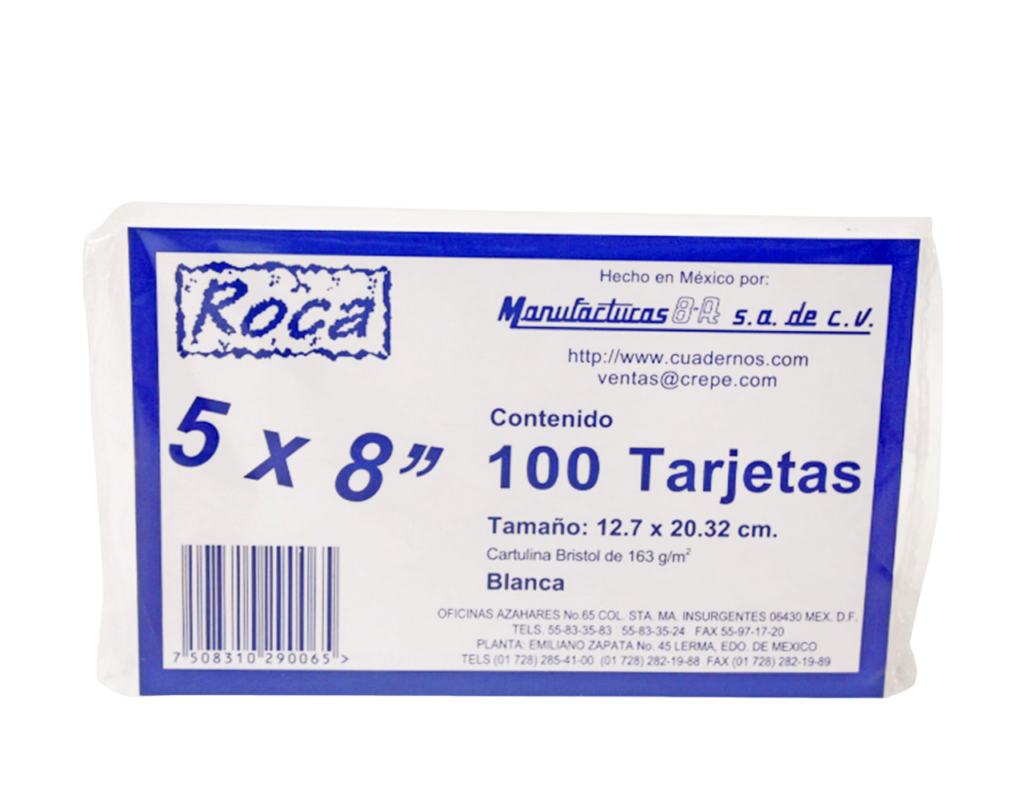 TARJETA BRISTOL 5X8" CON 100 ROCA agregado a tu lista