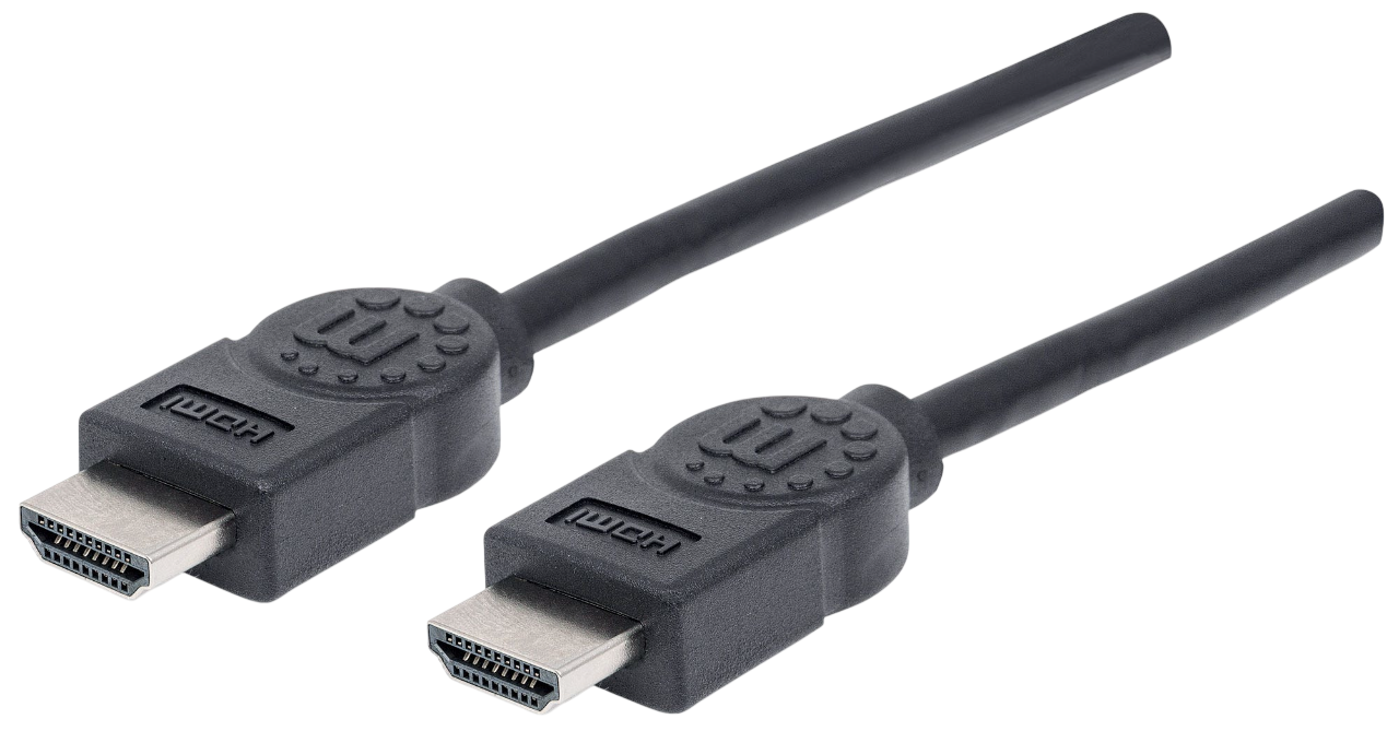 El cable Manhattan 306119 es un cable HDMI macho/macho de 1.8 metros (6 pies) de alta velocidad, negro, con conectores HDMI de 19 pines y contactos niquelados, que soporta resoluciones de hasta 4K@30Hz, ofrece un ancho de banda de 10.2 Gbps, y cuenta con doble blindaje para minimizar interferencias, ideal para conectar dispositivos como Blu-rays y consolas a televisores o monitores, proporcionando audio y video digital de alta calidad.