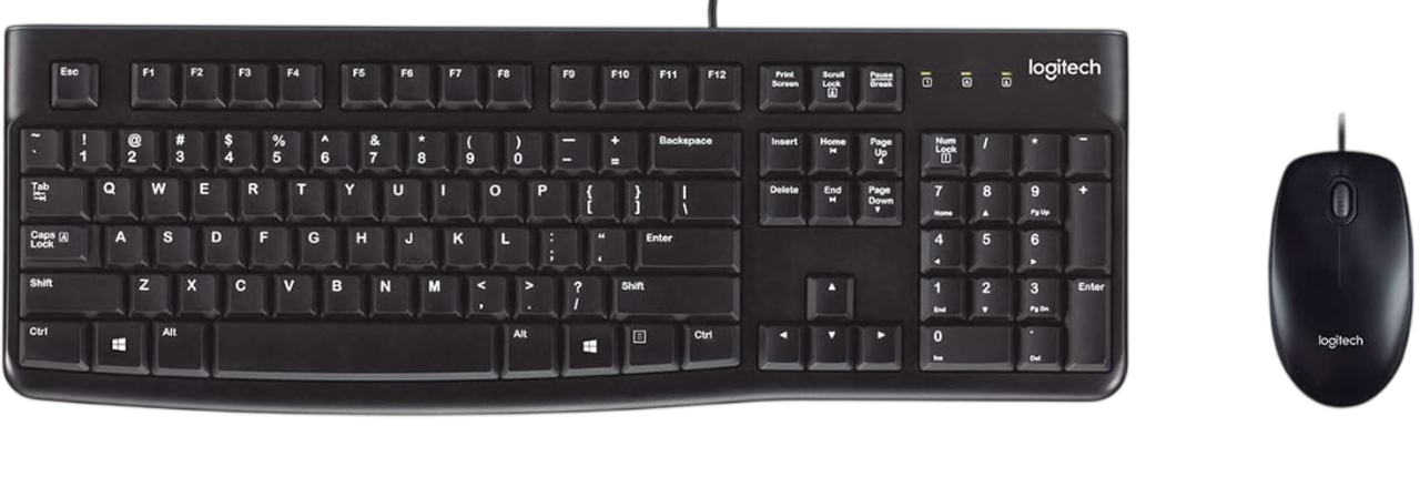 El Logitech MK120 Negro es un combo de teclado y mouse USB alámbrico, ideal para uso diario, con un teclado de tamaño completo, teclas silenciosas y diseño resistente a salpicaduras, y un mouse óptico de alta definición (1000 dpi) para un control preciso, ambos con conexión Plug-and-Play sencilla y compatibles con Windows, ofreciendo una solución duradera y económica.