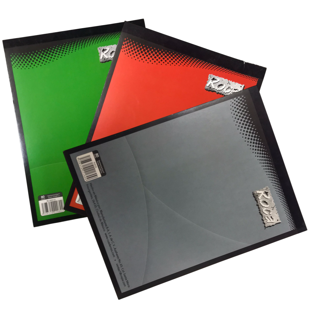 Cuaderno o resma de papel tamaño carta (aprox. 21.5 x 28 cm) que contiene 80 hojas, comúnmente de papel bond (60-75 g/m²), unidas por una banda engomada o espiral, ideal para tomar apuntes, tareas o dibujos, con hojas desprendibles y a menudo con una cubierta plástica o de cartón semirrígido, siendo marcas como Scribe o Norma populares para este producto.