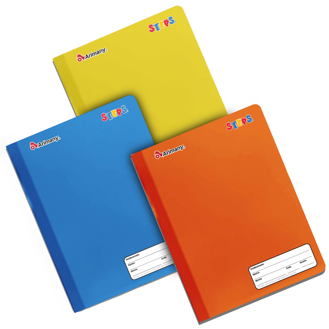 Un cuaderno cosido profesional “Steps” de 100 hojas es una libreta duradera de la marca Arimany, con encuadernación cosida que evita el desprendimiento de las hojas, ideal para apuntes escolares o de oficina, disponible en diferentes formatos (carta, francesa) y tipos de hoja (cuadro, raya, sin líneas) con cubiertas de colores llamativos para fácil identificación y organización, ofreciendo resistencia y espacio para notas y dibujos.