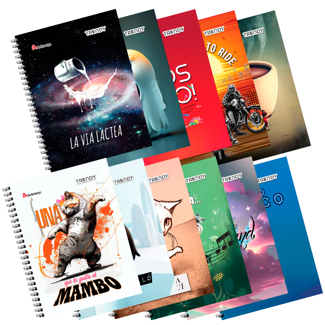 - Encuadernación: Doble anillo (espiral), que facilita la escritura y permite doblar el cuaderno por la mitad.