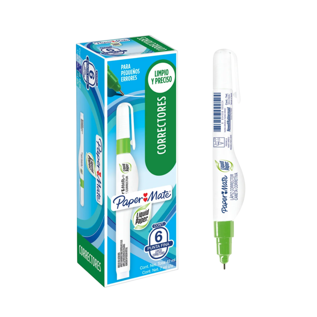 CORRECTOR LIQUIDO TIPO LAPIZ 7 ML CON 6 PIEZAS PAPER MATE